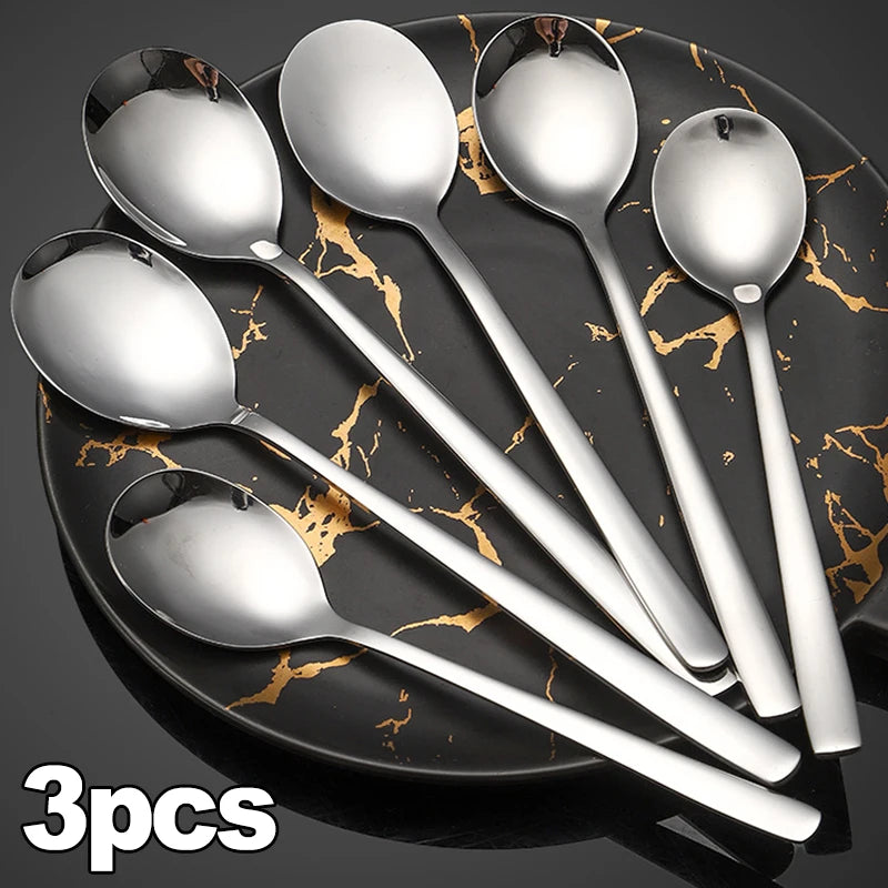 Elegante Löffel aus Edelstahl mit Langem Griff (3er/1er Set)