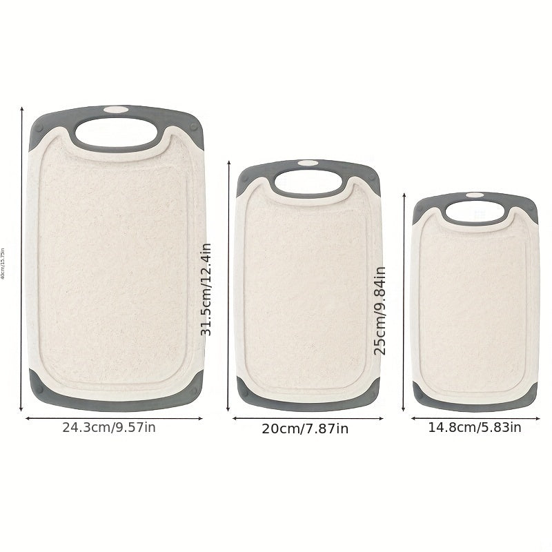 Set-Umfang: Das Set enthält drei Schneidebretter, ideal zur Trennung verschiedener Lebensmittel (z. B. Fleisch, Fisch, Gemüse) und zur Vermeidung von Kreuzkontamination.