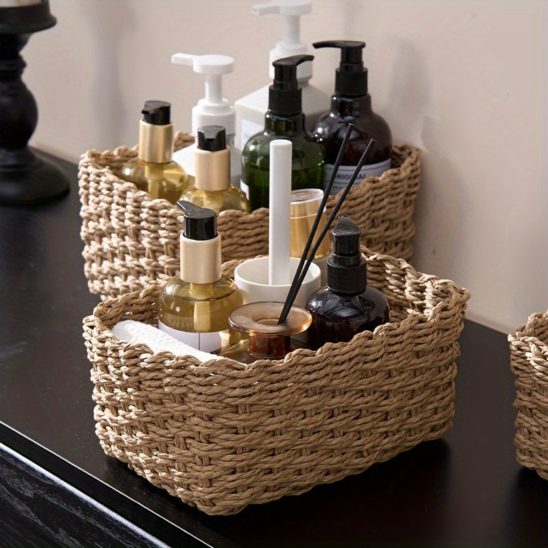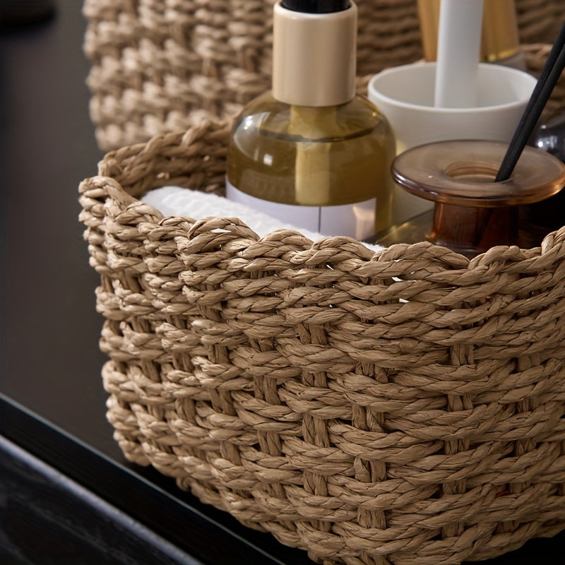 Der Korb ist aus wasserdichtem, strapazierfähigem und sehr starkem Papierschnur (Other material) geflochten.