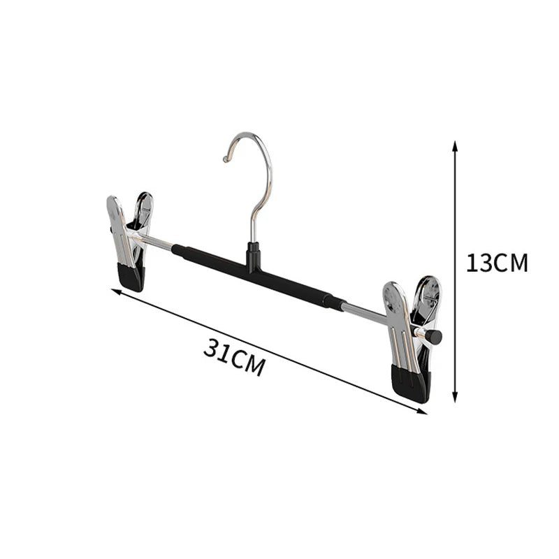 Verstellbare Anti-Rutsch-Clips: Die rutschfesten Clips können entlang der Bügelbreite verstellt werden, um verschiedene Größen und Stile von Röcken, Hosen oder Shorts fest und sicher zu halten, ohne Falten zu verursachen.