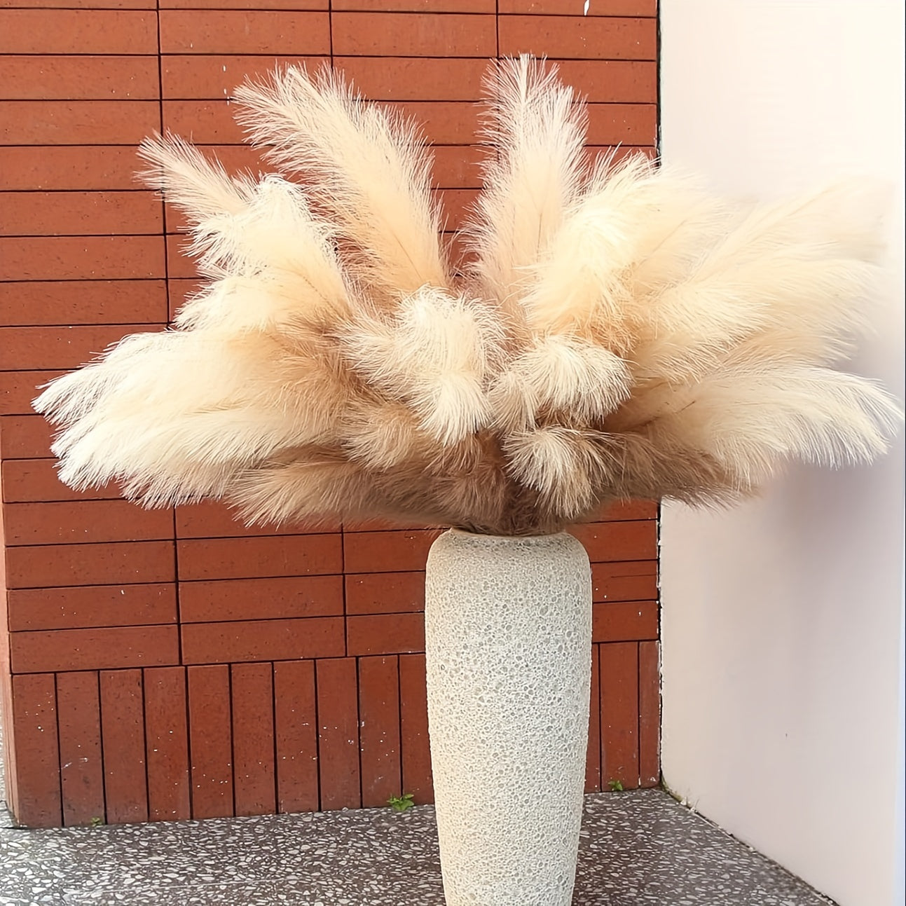 Pflanzentyp: Pampasgras (Pampas) mit einer künstlichen Feder-Textur (Feather Filler), die den Stielen ein volles, flauschiges Aussehen verleiht.