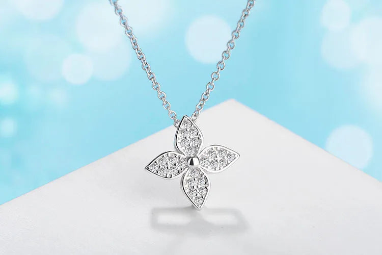 Elegante Halskette mit vierblättrigem Kleeblatt (Roségold, S925 Silber)