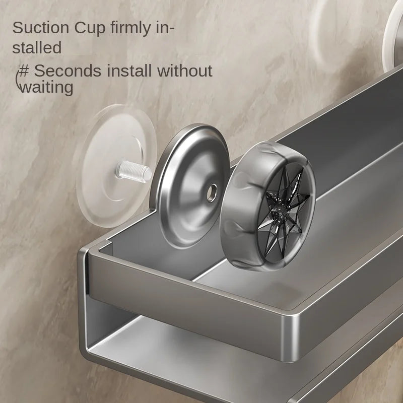 Montage ohne Bohren: Ausgestattet mit leistungsstarken Saugnäpfen, lässt sich das Regal einfach und schnell an glatten Wandflächen (wie Fliesen oder Glas) montieren. Ideal für Mietwohnungen und alle, die Bohrlöcher vermeiden möchten.