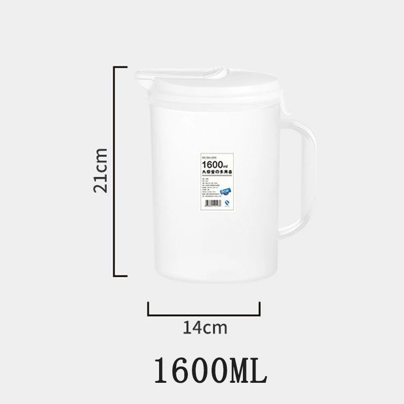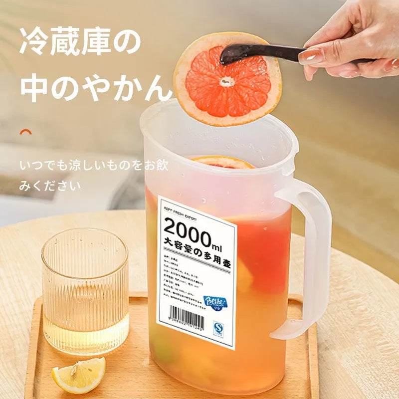 Vielseitige Verwendung: Konzipiert als Getränkekrug (drinking jug/pitcher) und Saftkessel (juice kettle). Obwohl das Material Kunststoff ist, ist das Produkt in den Stilen oft mit Glas-Karaffen und Krügen für kalte Getränke assoziiert.
