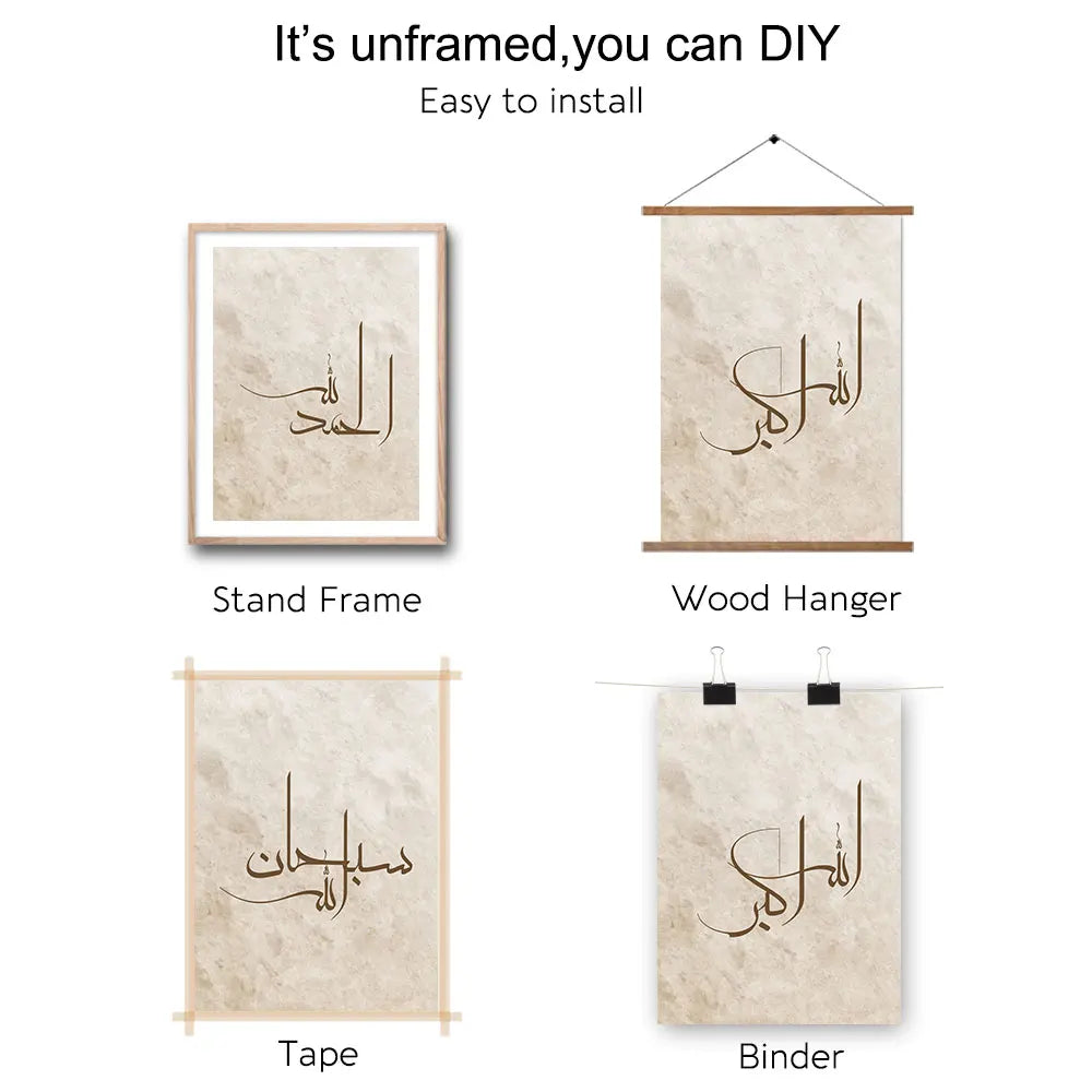 Design und Stil: Der Druck ist im islamischen Stil gehalten und zeigt inspirierende Schriftzüge/Kalligrafie (Letter). Die Form ist ein Vertikales Rechteck (Vertical Rectangle).