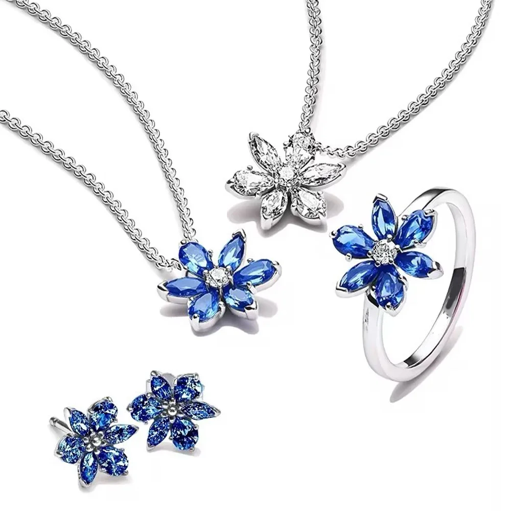 Sterling Silber 925 – Sparkling Blue Flower Schmuckset für Damen