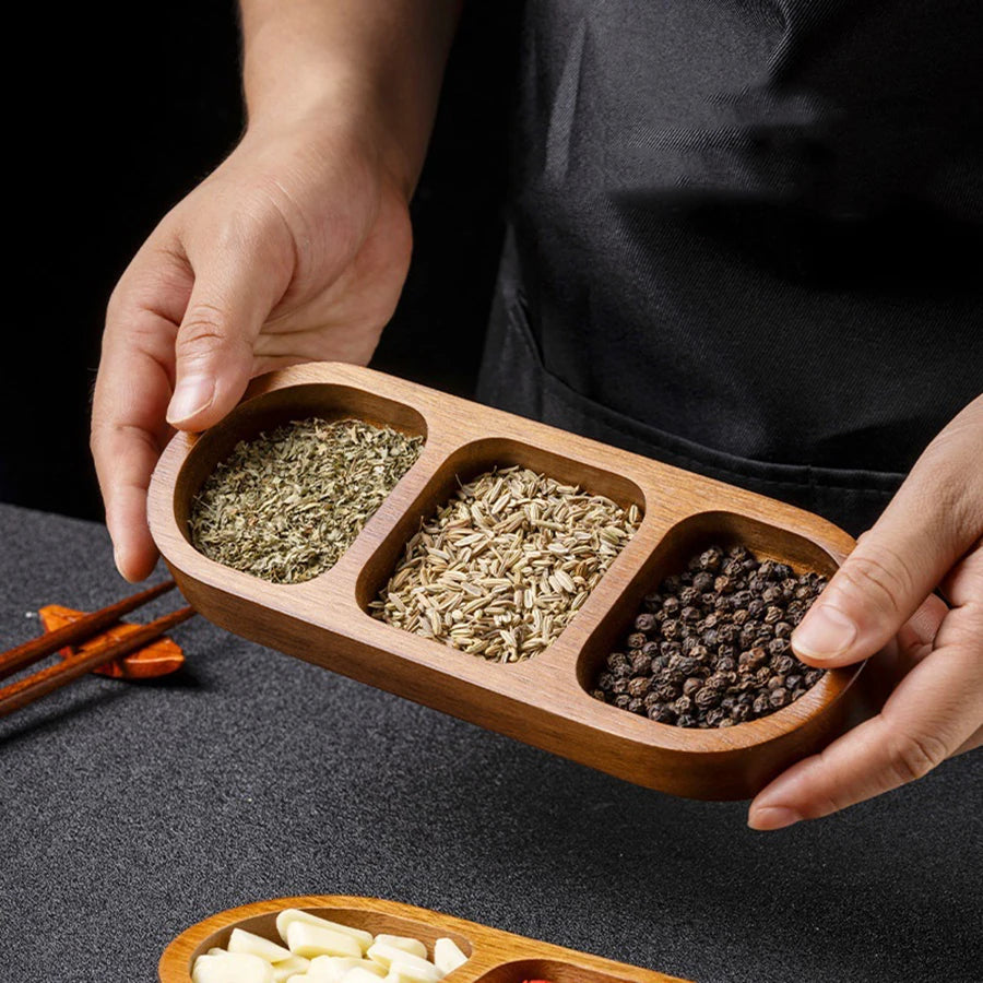 Elegantes Serviertablett mit Unterteilung aus Holz